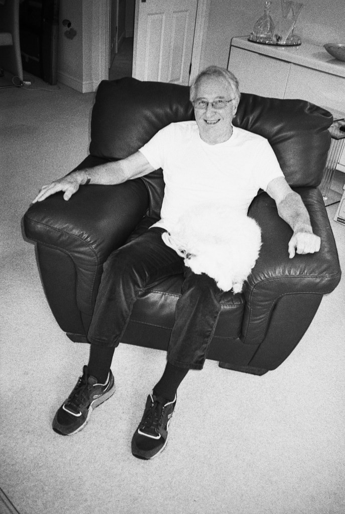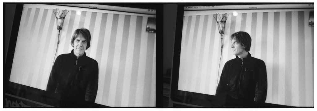 Graham Fink – legendary ad man shot through a computer screen. 2021.